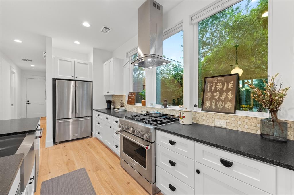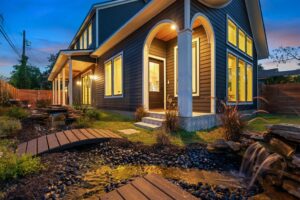 Where timeless curb appeal meets modern in this custom built 4-bed, 3-bath, 2 car garage home. Featuring bold arched accents, designer lighting, and sleek tile, this home stands out from the ordinary. As you enter the front gate, a serene water feature with natural stone adds both beauty and tranquility. Inside, you’ll find soaring cathedral ceilings and oversized windows that flood the space with natural light. A hidden bookshelf door conceals a secret nook tucked beneath the custom stairway —ideal for storage, a playroom, or a private reading retreat. Set in a prime East Austin location, enjoy close proximity to Mueller, downtown, beloved local spots, parks, and the true essence of Austin living.
